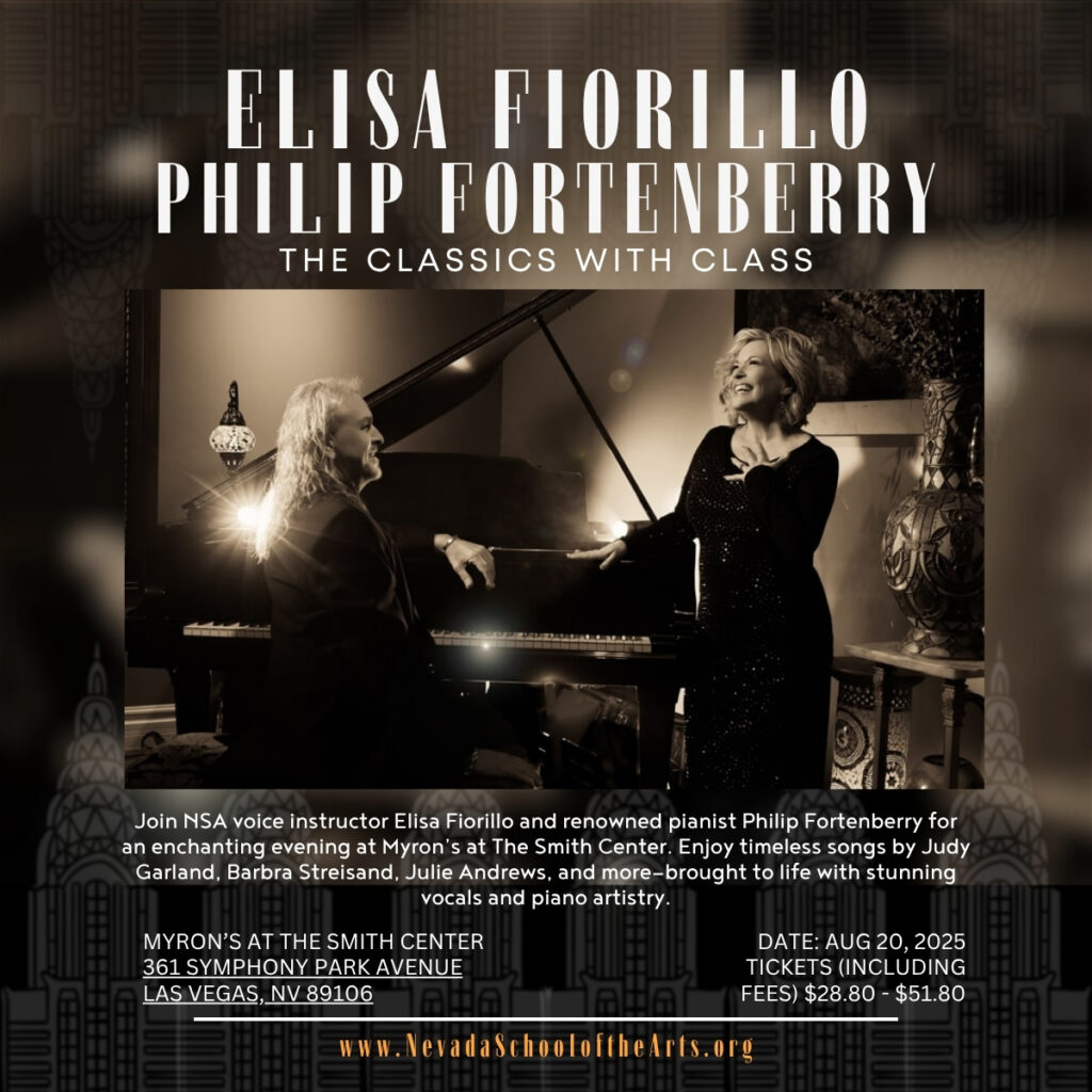Las Vegas, NV — Nevada School of the Arts proudly announces an extraordinary musical evening featuring NSA voice instructor Elisa Fiorillo and celebrated pianist Philip Fortenberry in “The Classics with Class,” a live performance at Myron’s at The Smith Center.