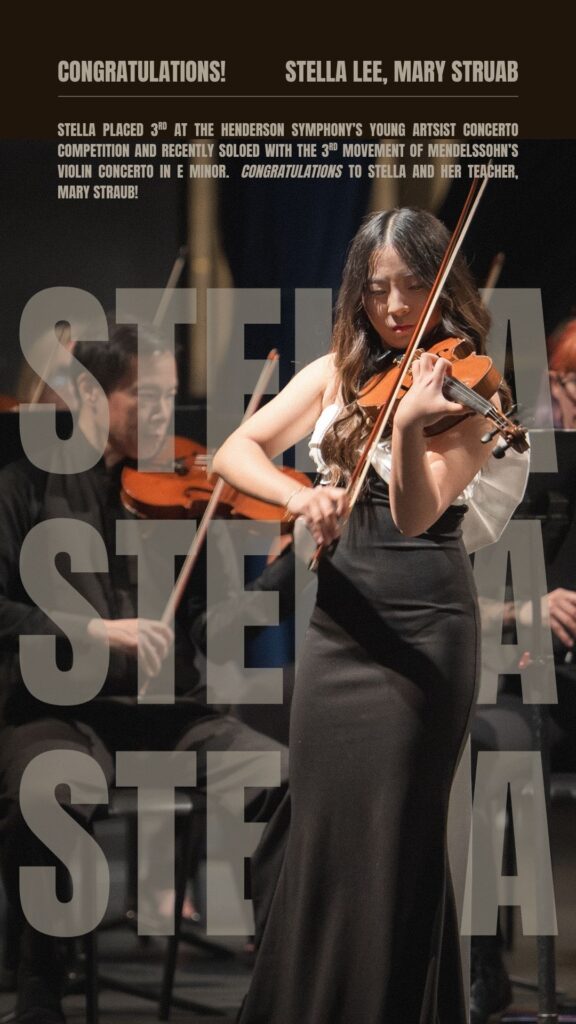 Nevada School of the Arts is proud to celebrate the recent achievements of our talented students, Violinist Stella Lee and Cellist Liam Guerrero, who recently performed with the Henderson Symphony Orchestra after winning 2nd and 1st place respectively at the Henderson Symphony Young Artist Competition.