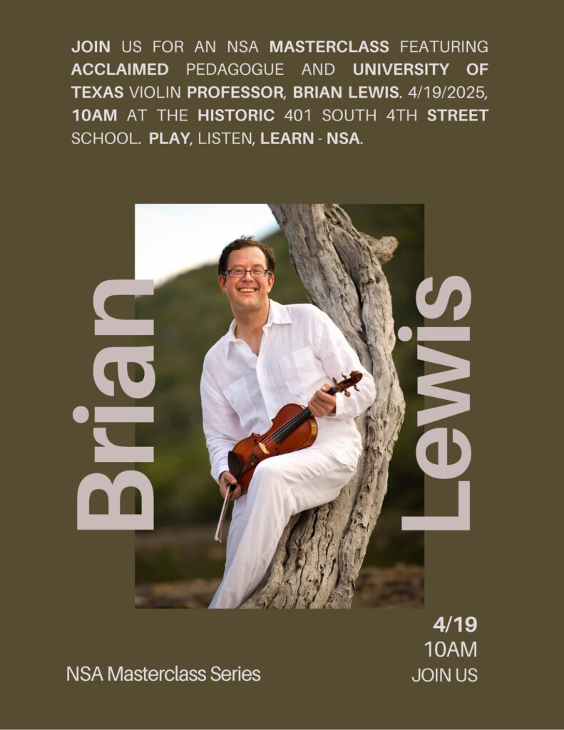 Join us for an NSA Masterclass featuring acclaimed pedagogue and university of Texas Violin Professor, Brian Lewis.
